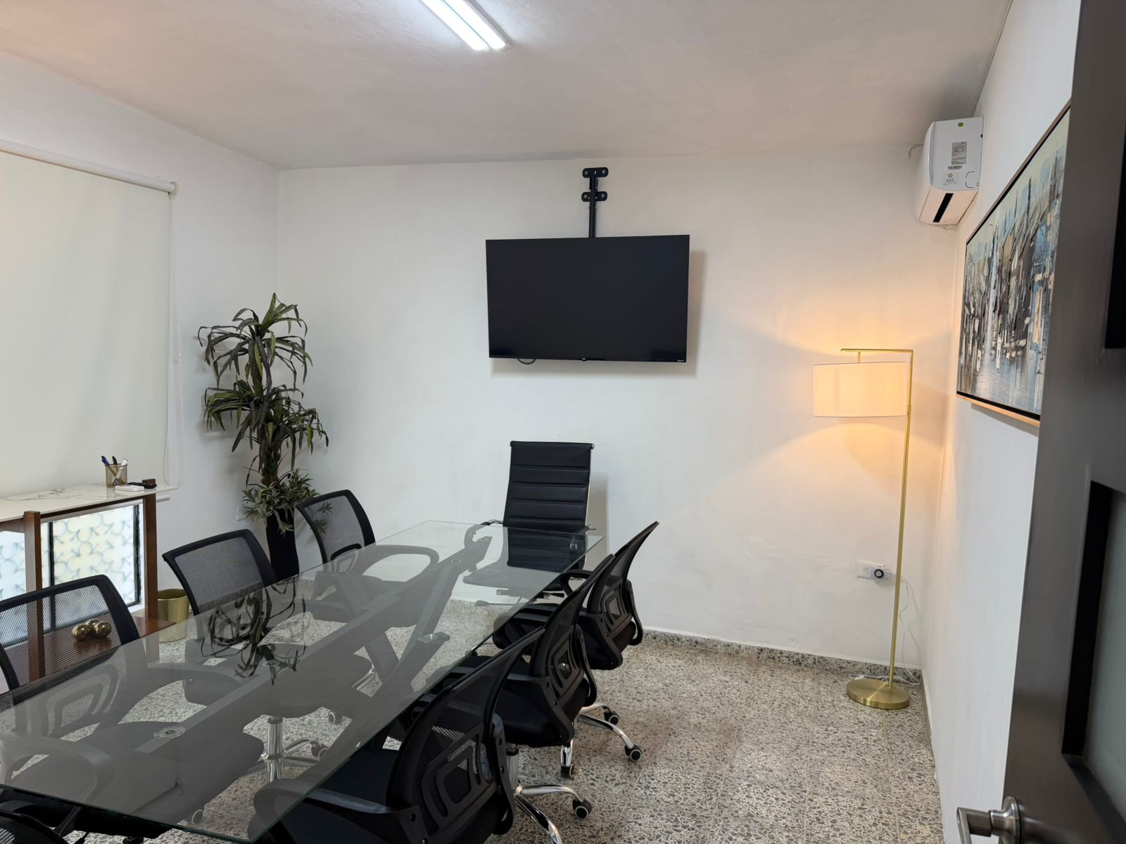 Servicio incluidos: Agua potable, internet, recolección de basura,luz eléctrica, servicio de café básico, sala de juntas equipada: con Aires acondicionado,TV, capacidad de 1 hasta 8 personas.