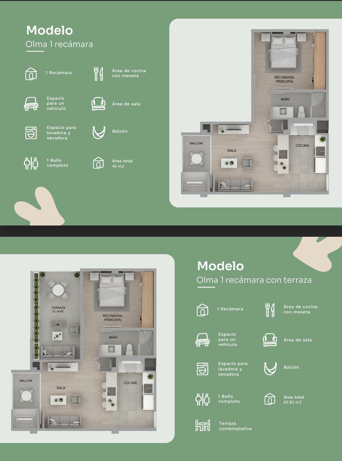 ✨Modelo 1 Recámara + terraza